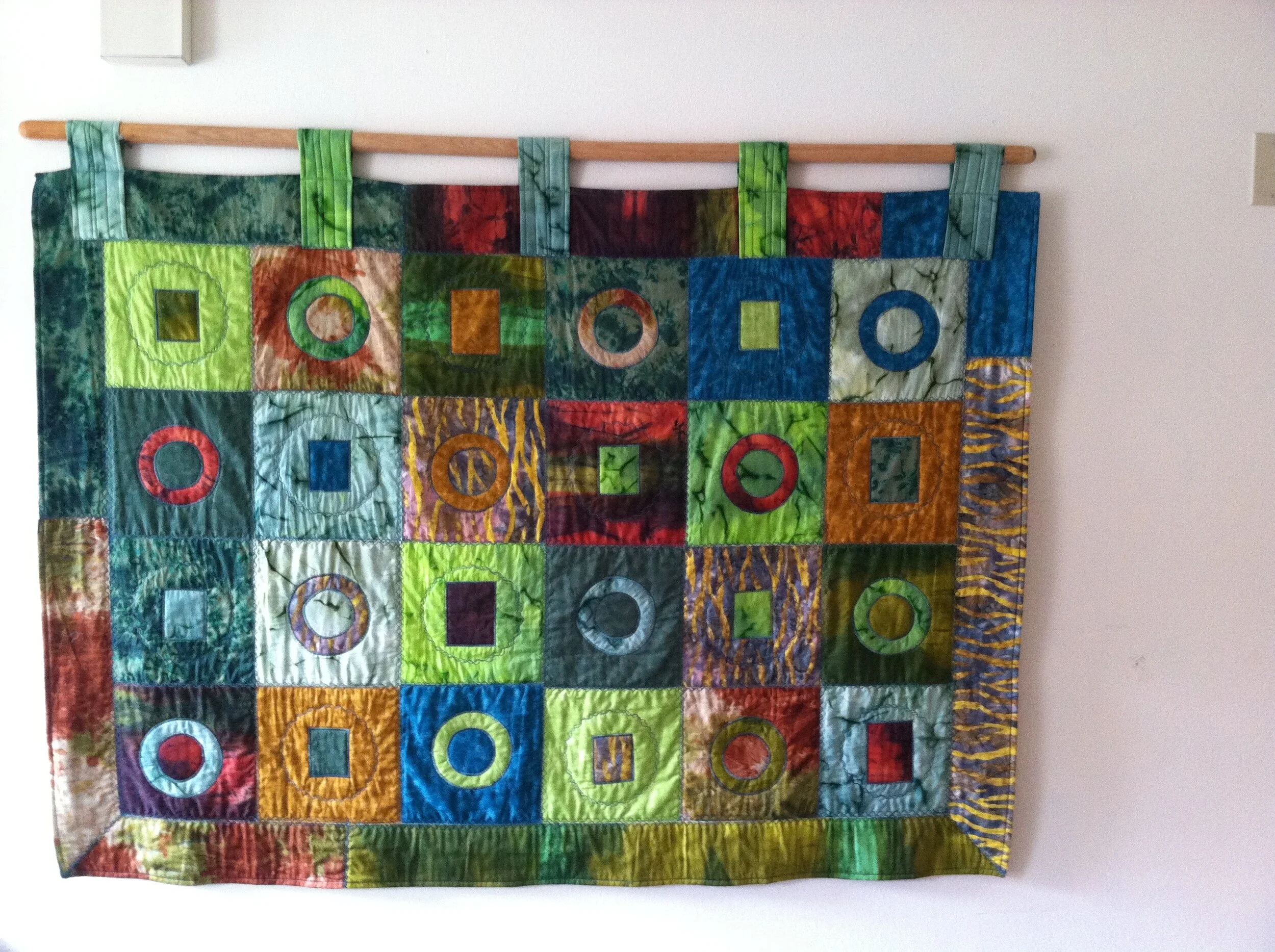 Quilts made from old t-shirts, old dresses, and other cloth memorabilia lead down memory lane into personal and cultural history and remind us where we come from and who we were. Quilts are gifts of love because they take immense amounts of time to piece together. They are meant to be used and wrapped up in, or to indulge our visual sense as we absorb the colors and patterns.
